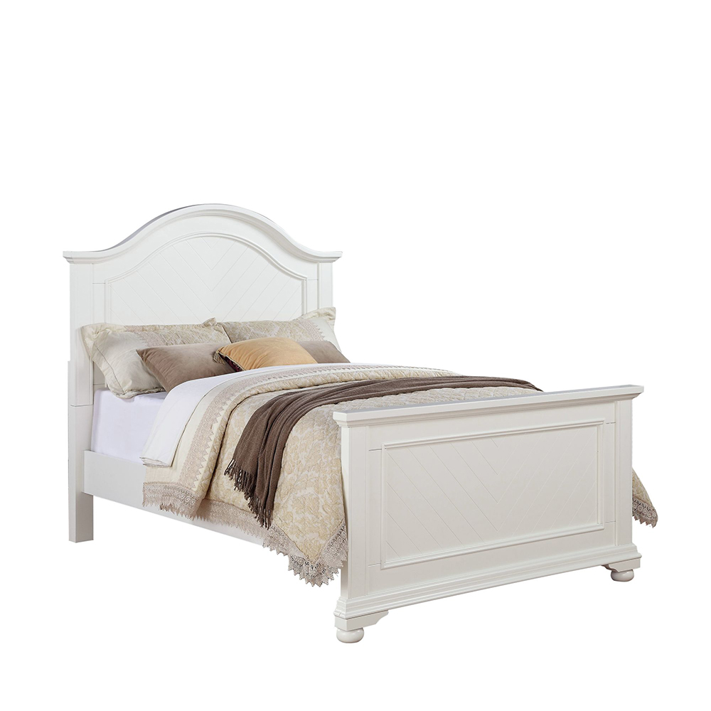 The simple and classic Brook White bedroom set features solid framing of Poplar with a white top coat and a smooth lacquer finish. The cases are constructed using finger joints and corner blocked reinforcements with dust proof bottoms. The drawers are constructed with French Dovetail in the front and English Dovetail in the back with drawer stops for ease of use. Dark coffee finished pulls and knobs complete the look of this set. ( Set Includes Brook White Queen Panel Bed Complete, Brook White Dresser with Mirror, Brook White Chest and Brook White Nightstand )