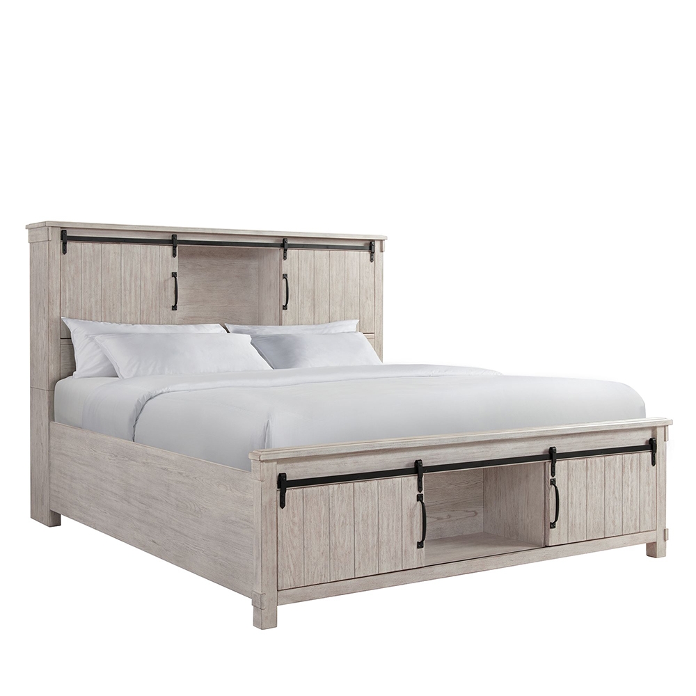 The Scott Platform Storage Bedroom Set is going to look amazing in your home! The headboard and footboard feature an open display case, perfect for storing your favorite décor. Easily slide the cabinet doors on select pieces in the collection to access your belongings. The nightstand features two USB ports, that will keep your devices fully charged while you sleep. Inside the nightstand, you can also find a hidden drawer that allows you to store away your more valuable items. ( Set Includes Scott White Queen Storage Bed, Scott White Dresser with Mirror, Scott White Chest and Scott White Nightstand with USB )