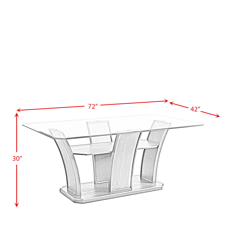The Elements International Dapper Walnut/Glass Rectangle Dining Table features a beautiful glass table top and an intricate wooden base. With 4 upholstered side chairs this dining set is a beautiful addition to any home. ( Set Includes Dining Table, and Four Side Chairs )