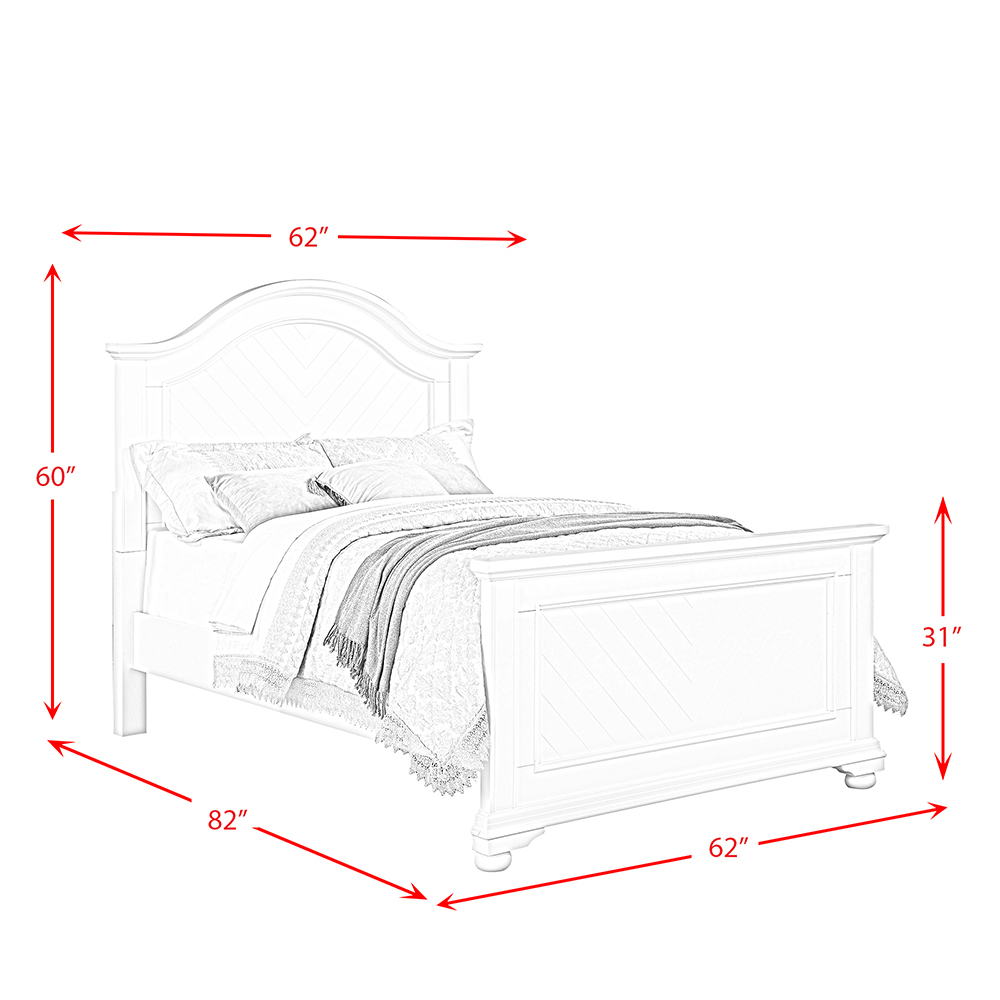 Bed Only, requires box spring. Get the look and feel of cottage charm with the Brook White collection by , featuring chevron patterned veneers in a casual white finish. The headboard's arch shape, astragal moldings throughout, and bun feet give this panel bed unparalleled style and individuality. Long-lasting strength and durability come from the kiln-dried solid hardwood frame and veneers. This set includes one panel bed. Light assembly is required. ( Full Bed )