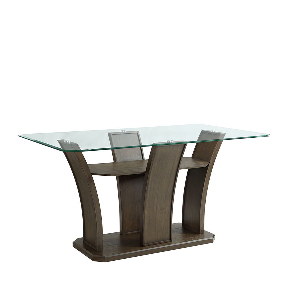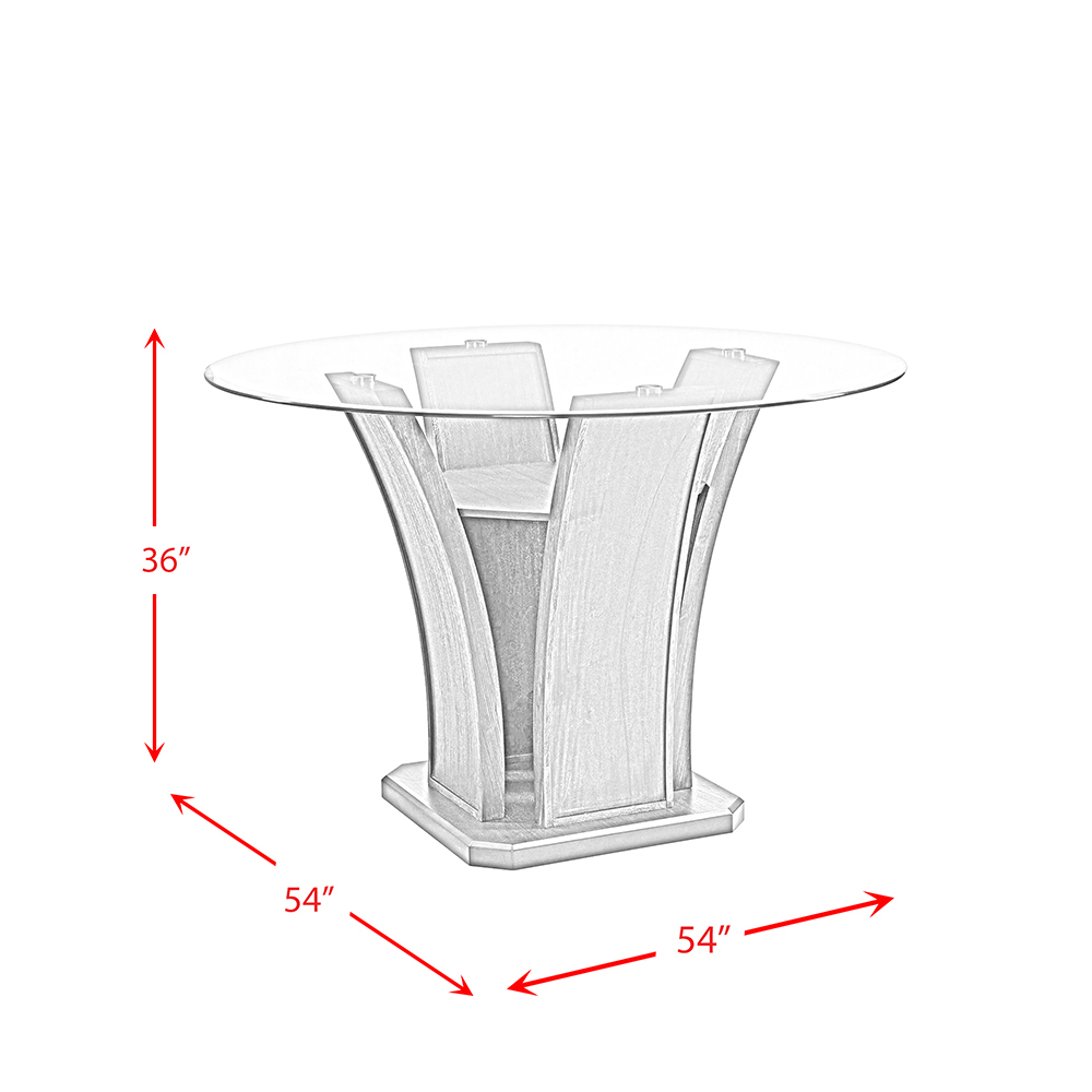 The simply stunning Dapper Round Counter is perfect for entertaining multiple guests at dinner or having a casual brunch. Topped off with a sleek, clear glass tabletop, this rectangular glass dining table displays an abundance of style. Dress up this exquisite dining table with a floral centerpiece for a pretty pop. ( Set includes table and 6 counter height chairs )